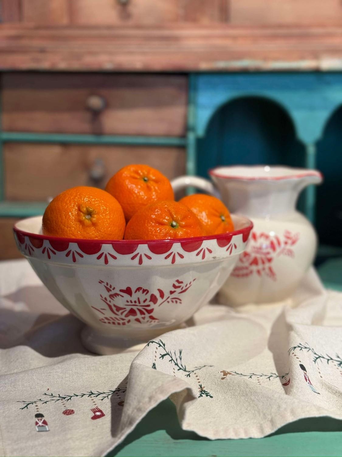 En skjønn bolle i keramikk som passer like fint som dekor på en hylle som til servering i juletiden.