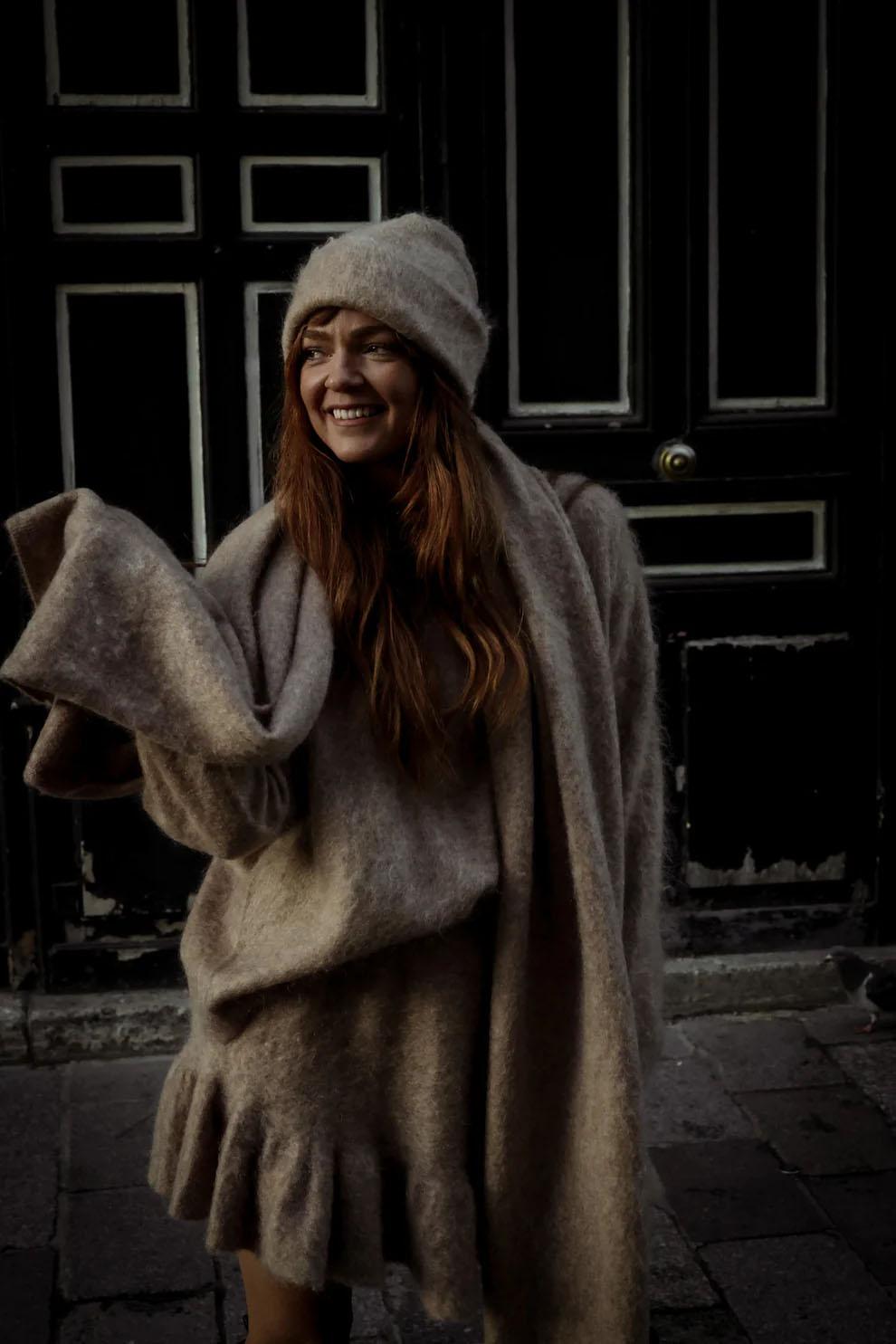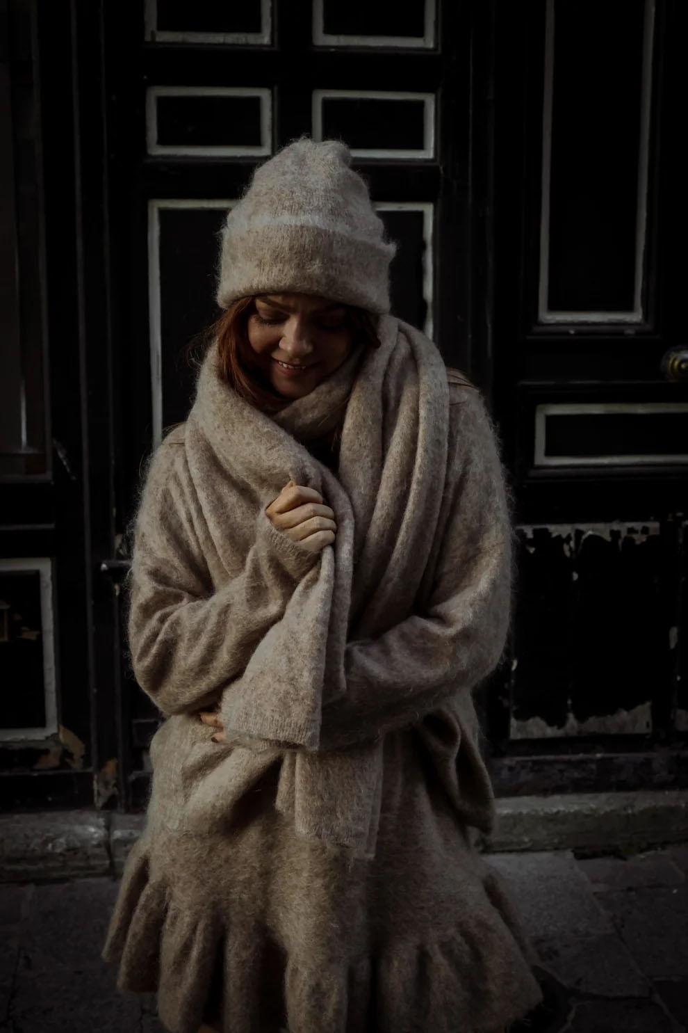 Stort, mykt og nydelig stort skjerf fra Confettibird. Dette skjerfet passer perfekt over en jakke, kåpe eller genser. Løfter et hvertantrekk.