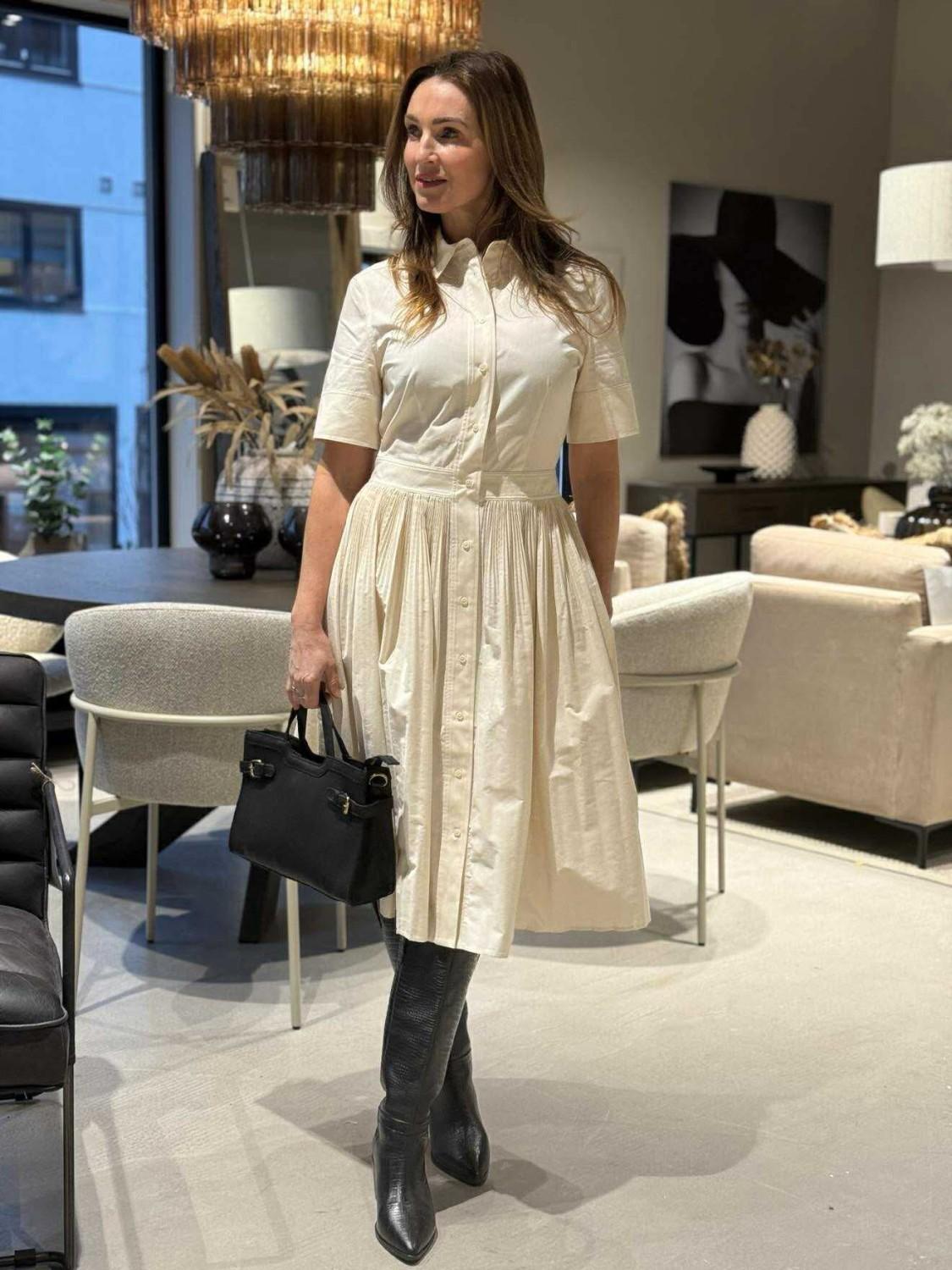 Rålekker kjole i en deilig crispi bomullskvalitet. Denne kjolen har knappelukking hele veien i front, skjortekrage og korte ermer. Den er like fin til jobb som til fest.