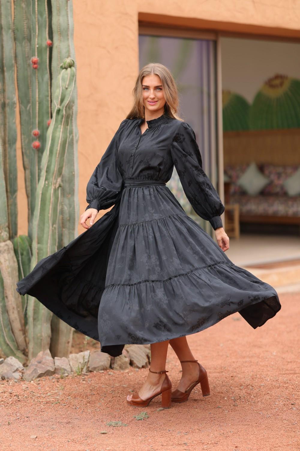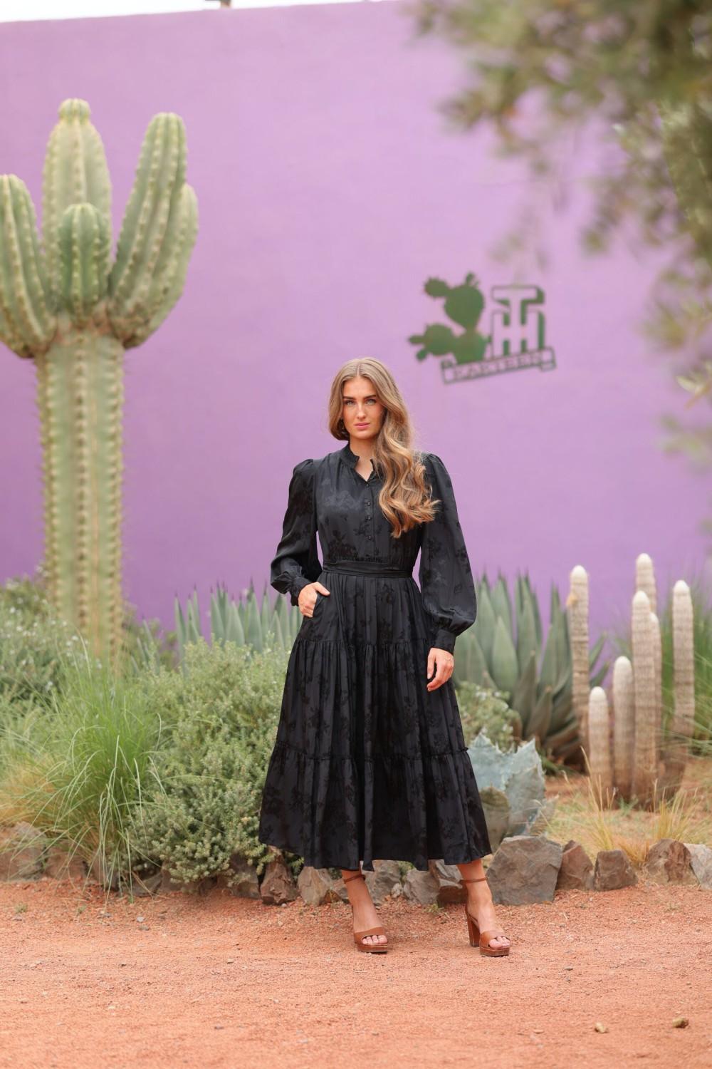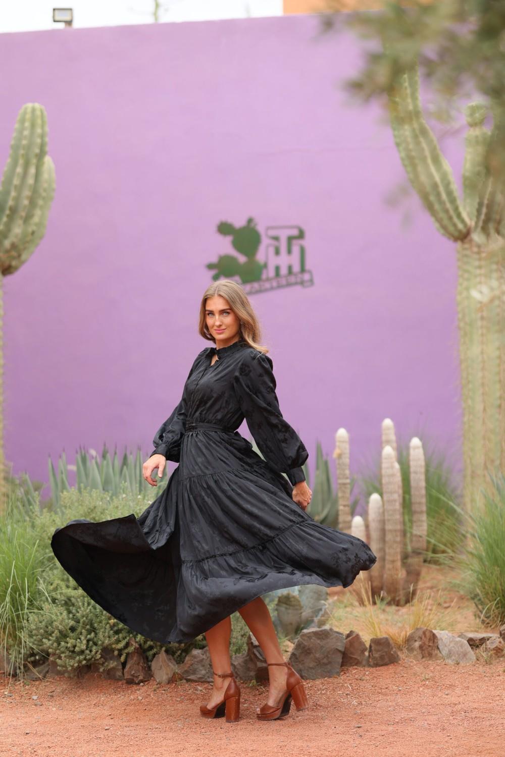 Partyversjonen av Ambrosia kjolen. Nydelig mønster i stoffet, masse vidde og lommer i siden. Dette er en kjole som passer for hverdag og fest. Det er også et avtagbart belte.