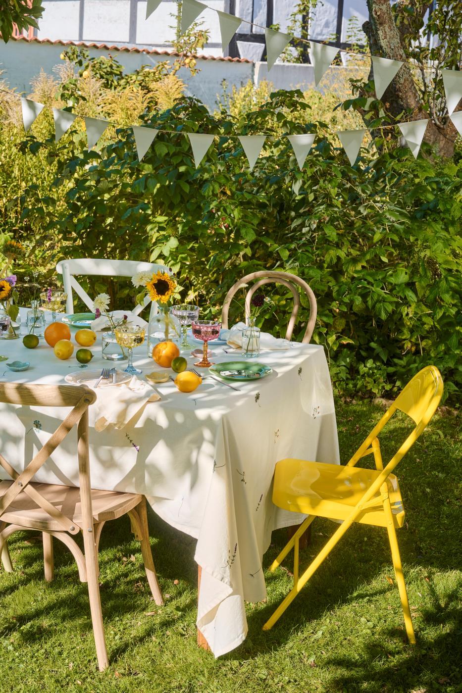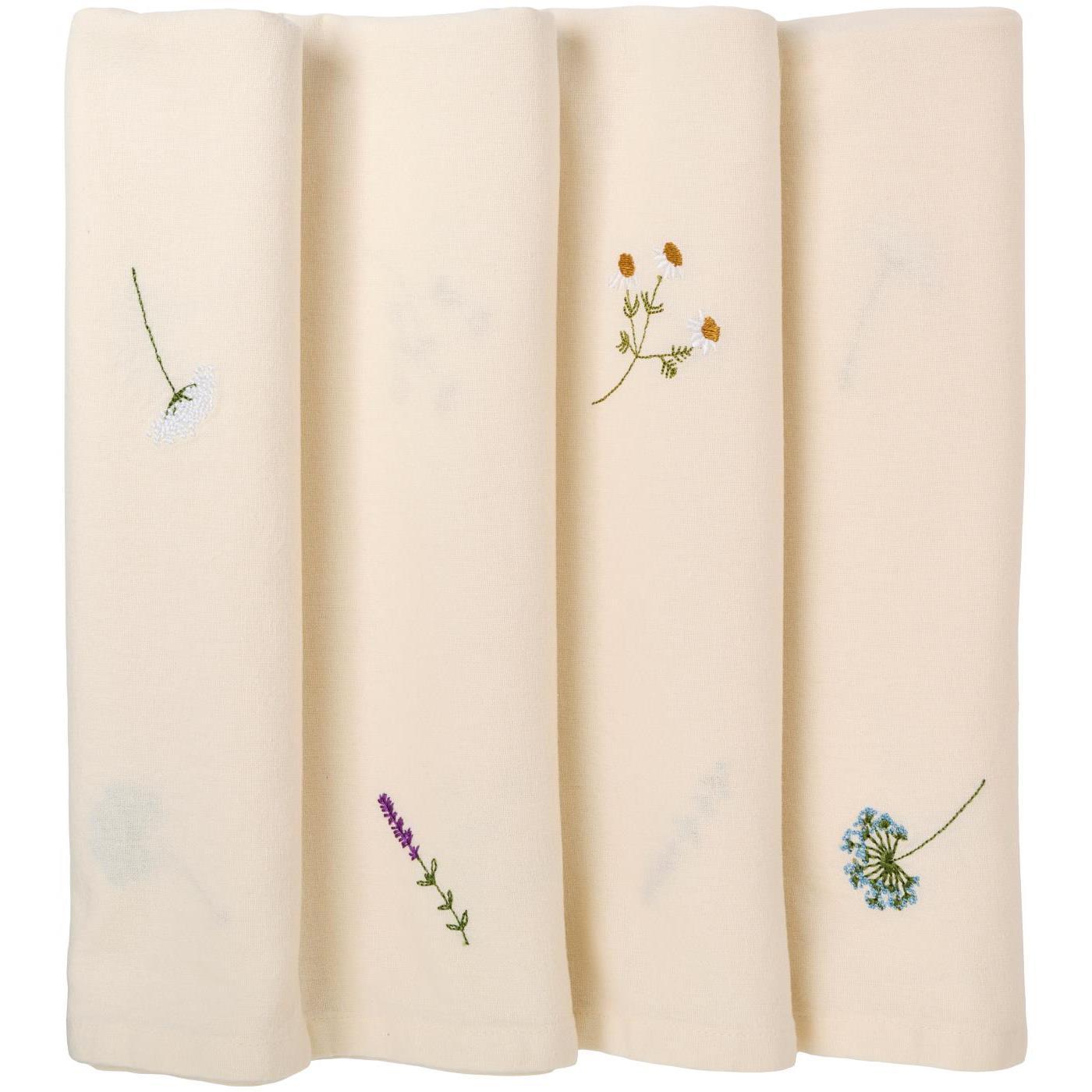 Rålekker creme farget avlang duk i 100% vasket bomullskvalitet. Den er vakkert dekorert med broderier av forskjellige blomster. En sjarmerende duk til sommerbordet ditt.