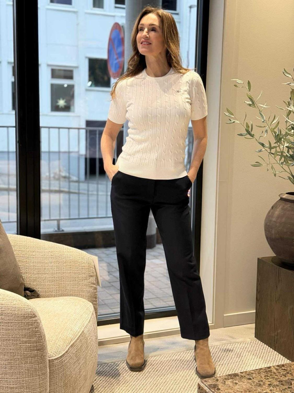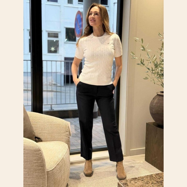 En flott penbukse som er skåret i en smal passform med et middels høyt liv og avkortet benlengde. Noe som gjør at den passer veldig fint til high heels, skoletter eller sandaler.