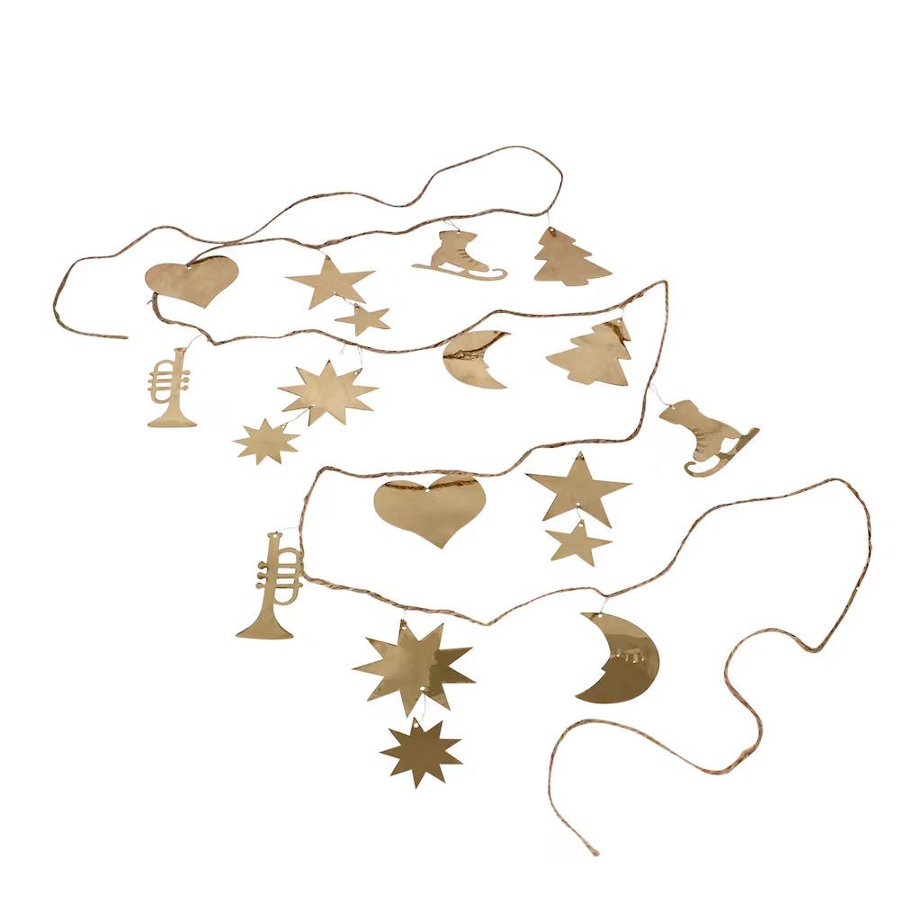 En tidløs girlander i messing pyntet med vakre ornamenter. Skaper en glans og varme i hjemmet – perfekt på peishyllen, langs bordet eller i vinduet. Klassisk håndverk med moderne eleganse.