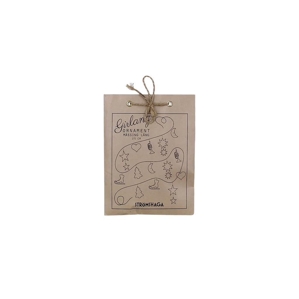 En tidløs girlander i messing pyntet med vakre ornamenter. Skaper en glans og varme i hjemmet – perfekt på peishyllen, langs bordet eller i vinduet. Klassisk håndverk med moderne eleganse.