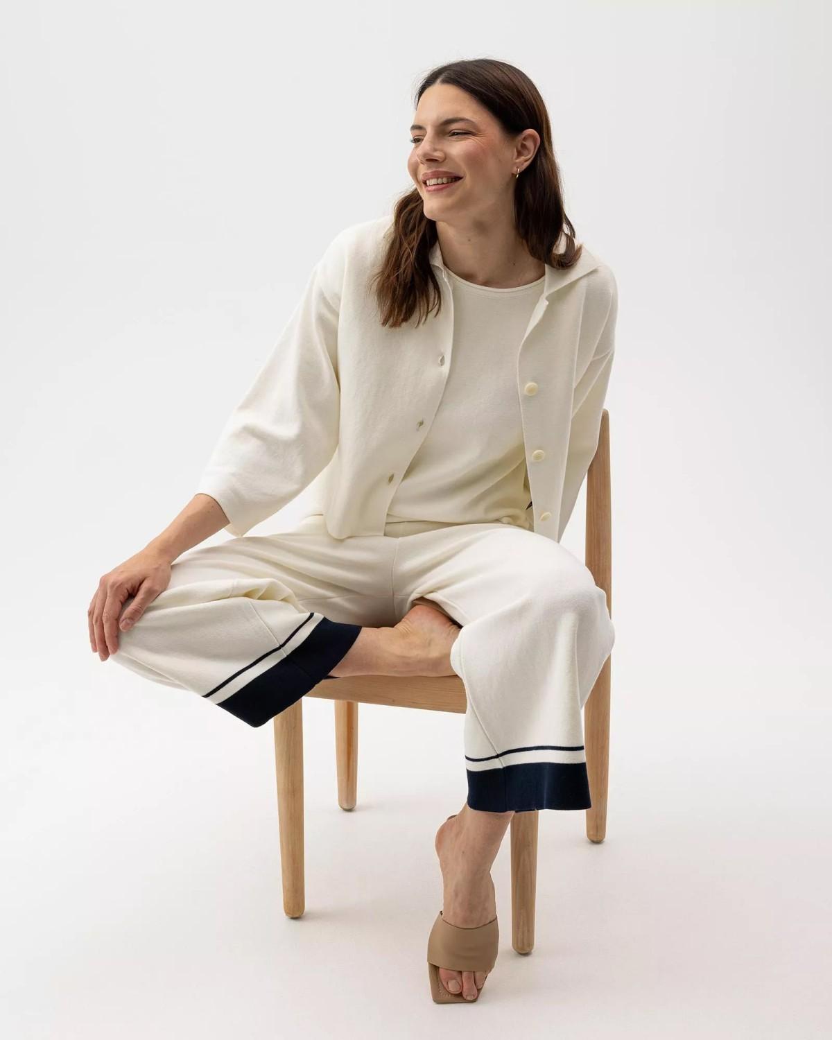 Super deilig strikkejakke i 100% økologisk bomull. Jakken har krage og knapper hele veien i front. En kort og litt “boxy” fasong, med 3/4 armer og lavsenkende skuldre. Denne jakken er superfn til å ha over en kjole eller en kul jeans.