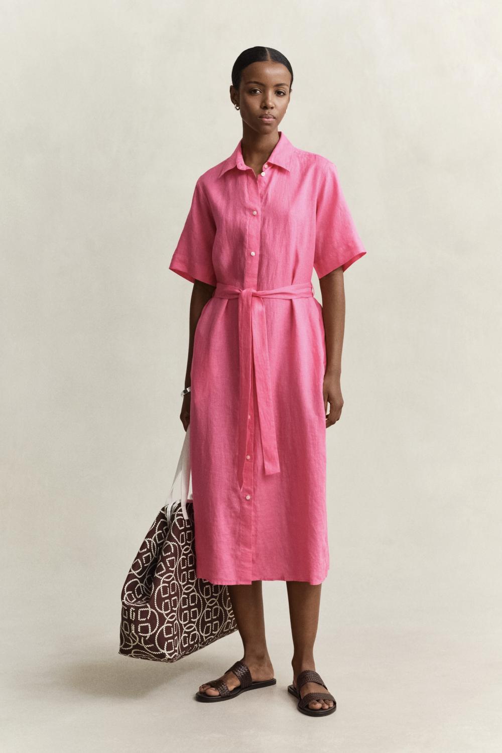 LINEN SS DRESS PINK