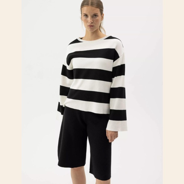 En strikket bermuda shorts i 100% økologisk bomull. Komfortabel strikk i midjen og vide ben.