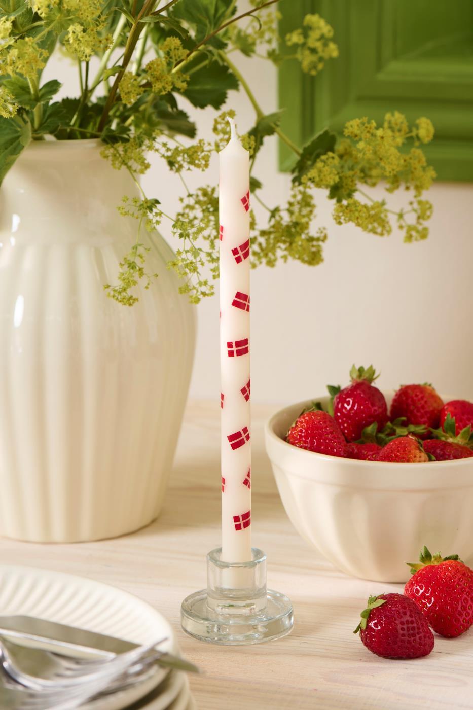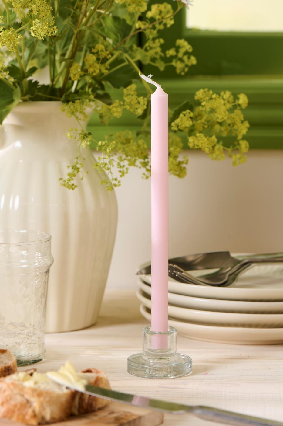 Dekorer et fint middagsbord med denne fine lysestaken i glass. Passer til kertelys fra Ib Laursen.