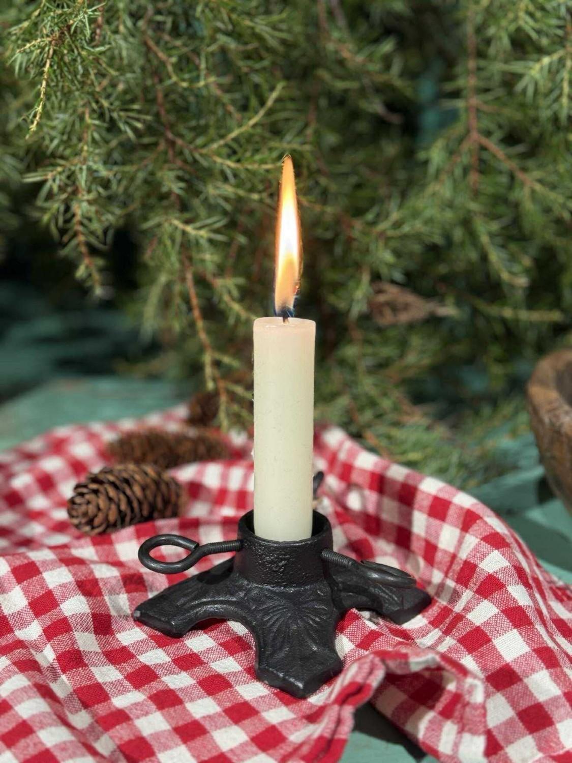 Mini juletrefot i jern som er designet til å brukes som en lysestake. Rustikk, enkel og perfekt for å skape en fin julestemning.
