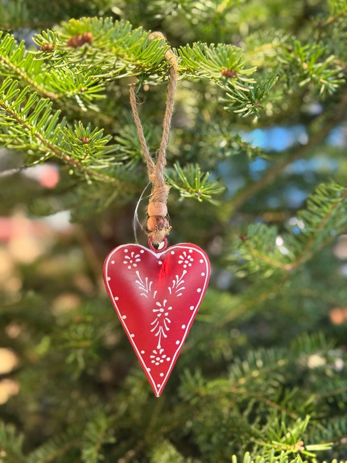 Et nydelig metallhjerte, vakkert dekorert med fine detaljer. Perfekt som julepynt – heng opp på en kvist, et juletre eller bruk det som stemningsfull dekor i hjemmet. Skaper umiddelbart en varm og koselig julestemning.