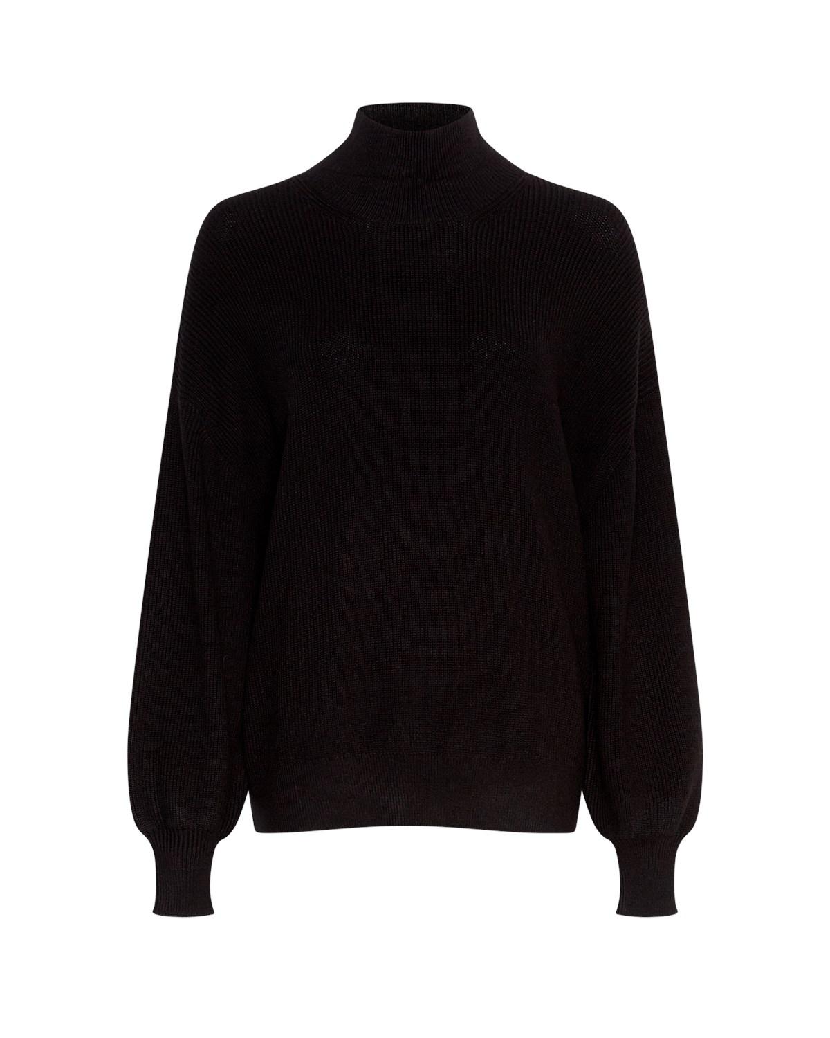En stilren genser som passer perfekt både til en bukse eller skjørt i samme kvalitet. Det er strikket i en myk viskoseblanding, har ballongermer og en halvhøy hals.