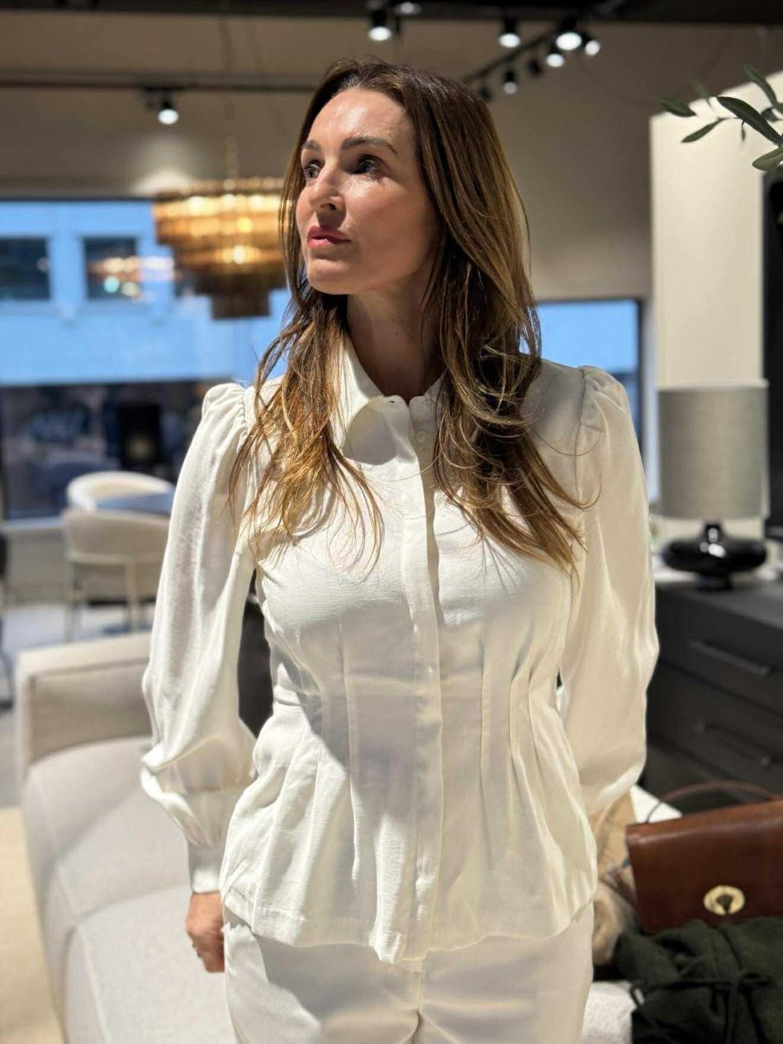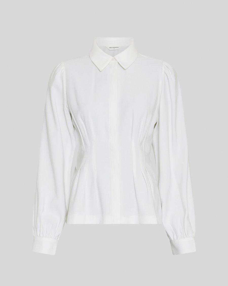 En klassisk bluse med skjortekrage og skjult knappelukking. Innsing som gjør at du får en veldig feminin passform.