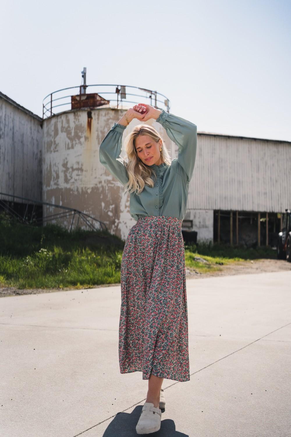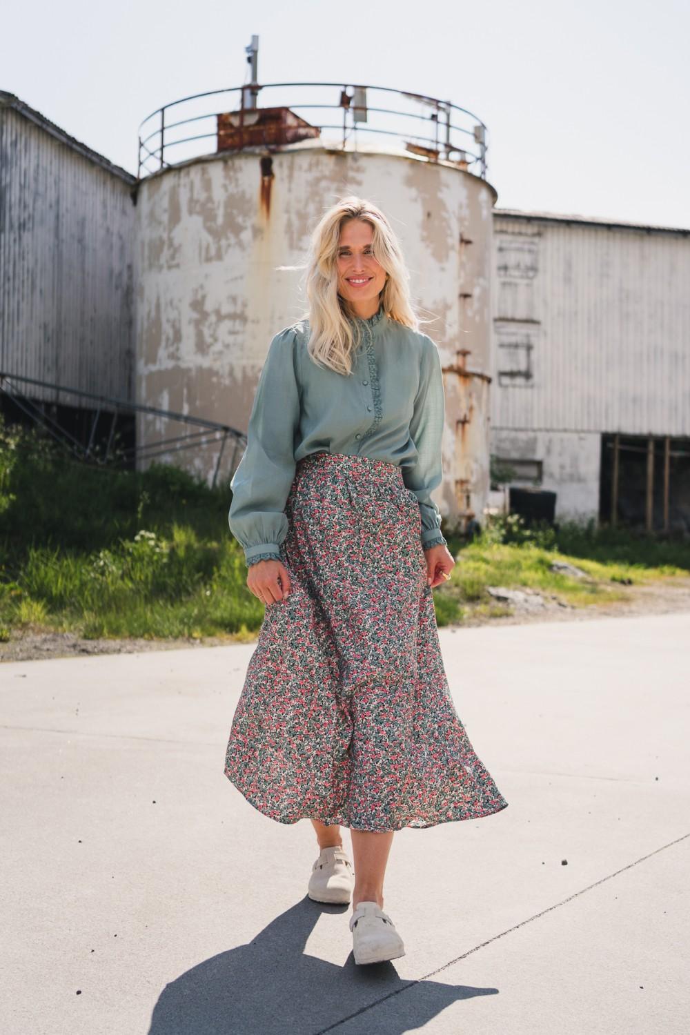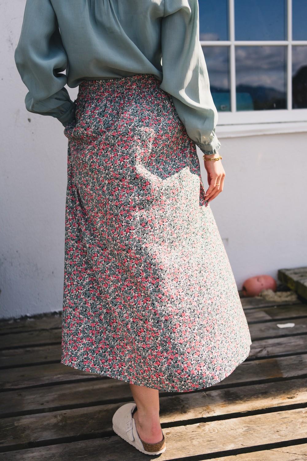 Dette skjørtet fra Raus i blomsterprint er et must-have denne sommeren. Det har en komfortabel passform med strikk i livet, lommer og midi lengde. Passer superfint sammen med blusen i samme kvalitet, eller en hvit bluse, t-shirt.