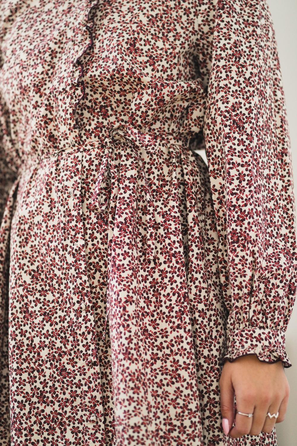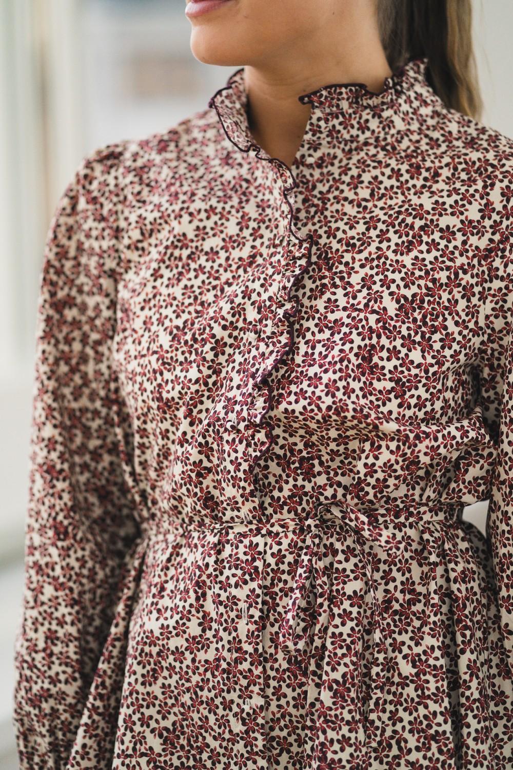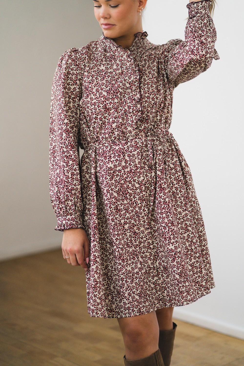 En nydelig kjole som passer til så mange anledninger. Denne kjolen er et must denne sesongen og med sitt vakre print, blonde volanger på knappelukking i front, lommer og avtagbart belte, vil den passe perfekt både til hverdag og til fest.
