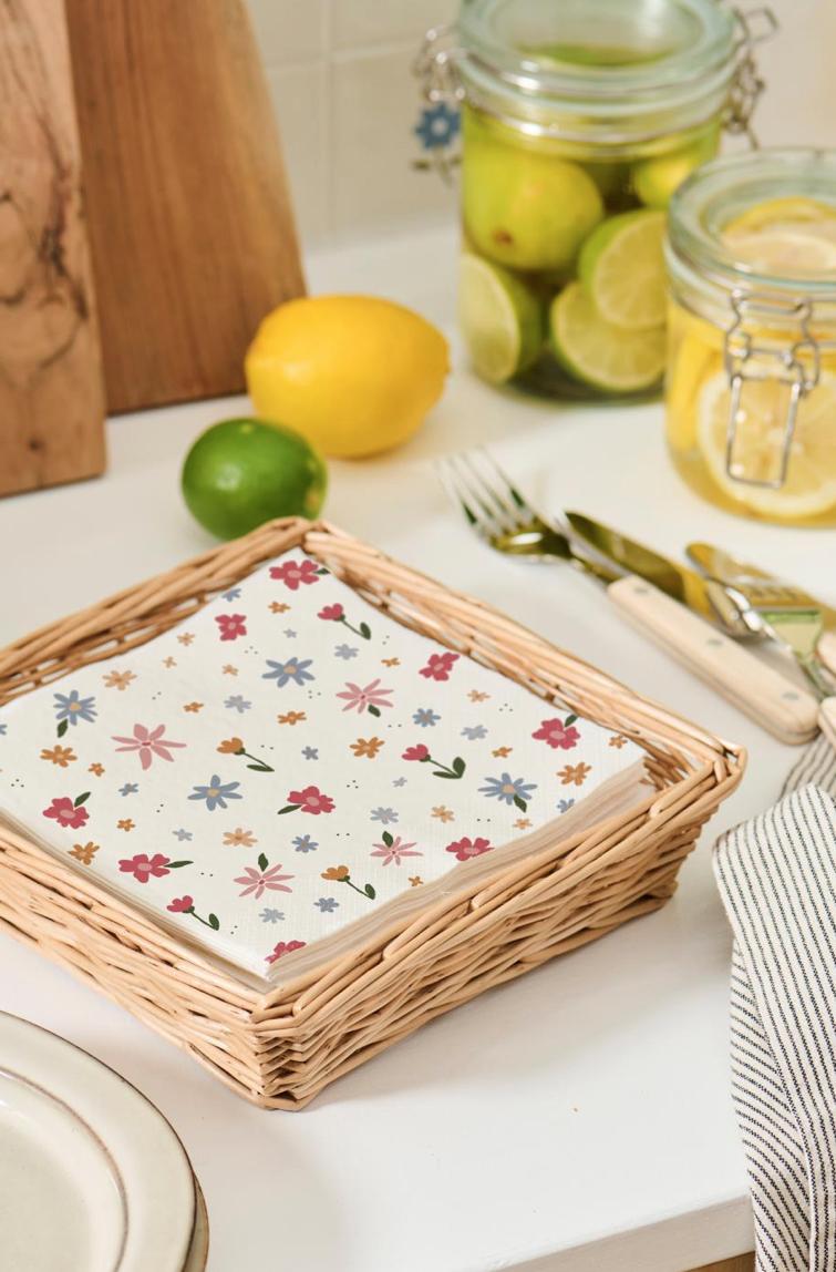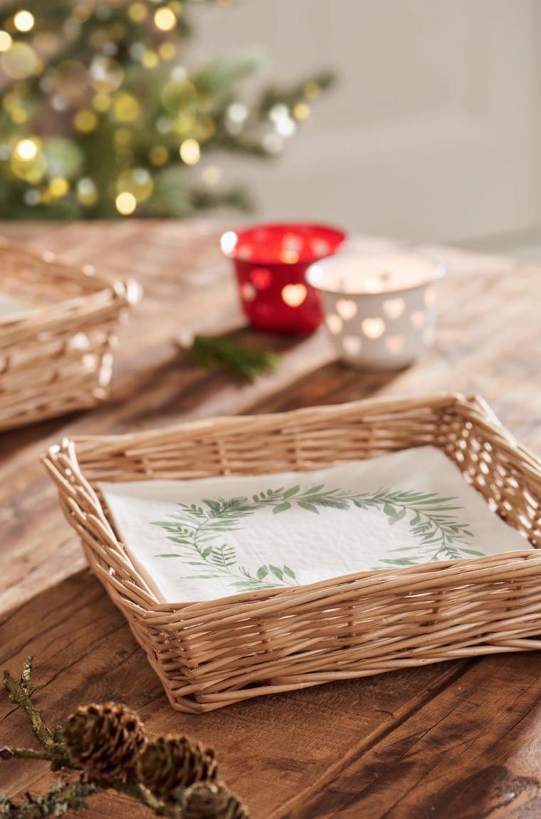 Firkantet serviettkurv i hel pil som kombinerer funksjon og dekor. Perfekt til servietter på spisebordet eller til små oppbevaringsbehov. Den naturlige pilen gir et varmt og hyggelig uttrykk som pynter opp i hjemmet.