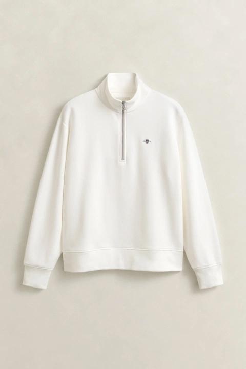 En klassisk genser i en myk bomullsblanding med ribbestrikk og half zip. Genseren har en logo brodert på brystet og høy krage. Den passer veldig fint over en skjorte eller som overdel til skjørtet i samme kvalitet.