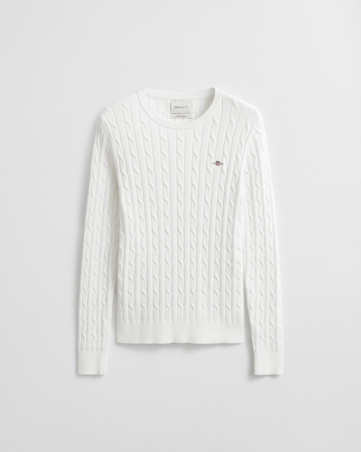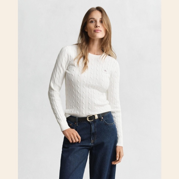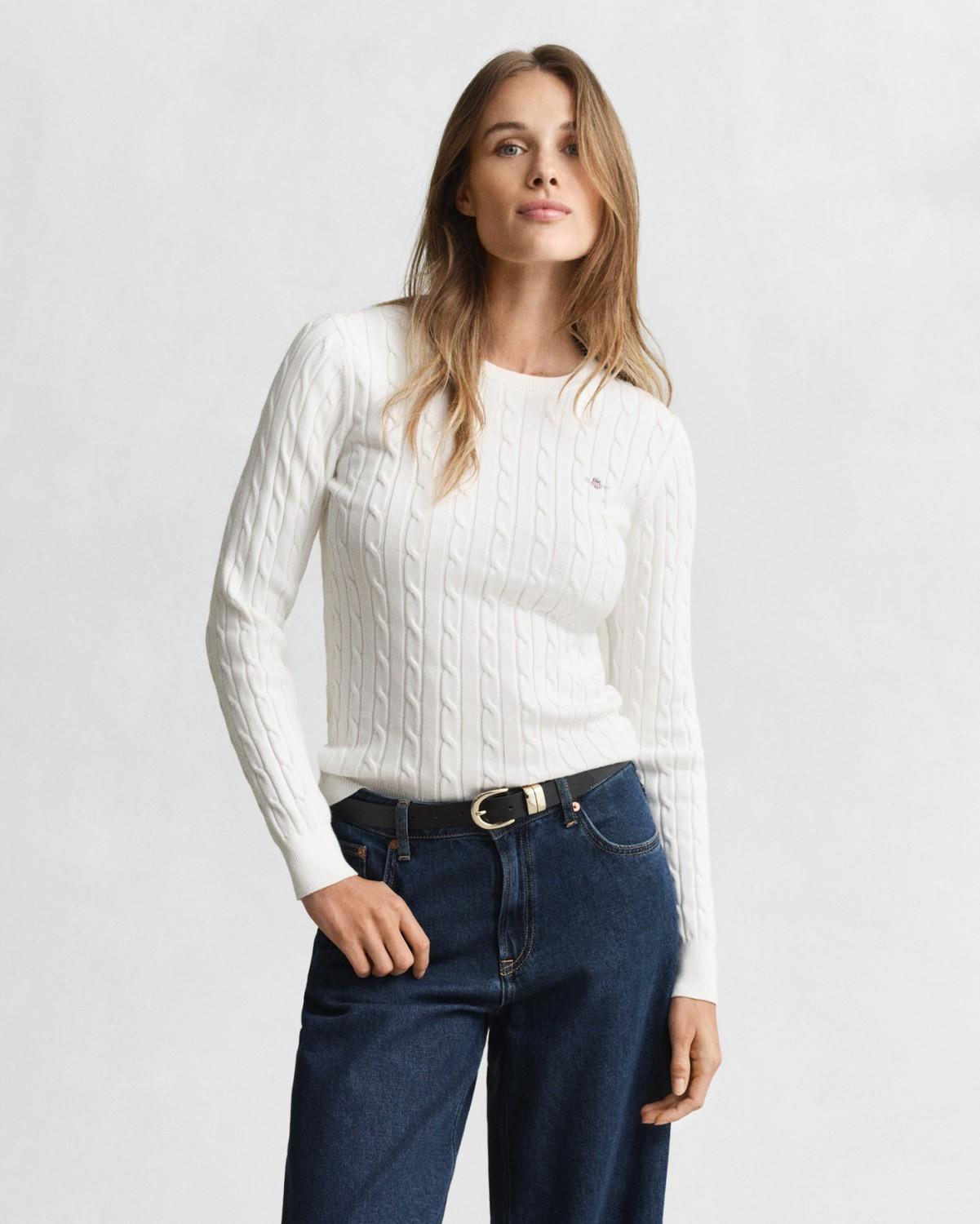 STRETCH COTTON CABLE C-NECK EGGSHELL